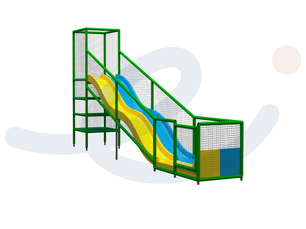 Tobogán: Dos ondas doble carril en fibra de vidrio con protección UV.